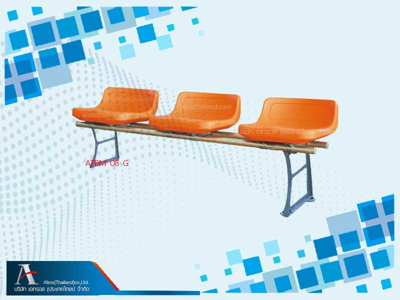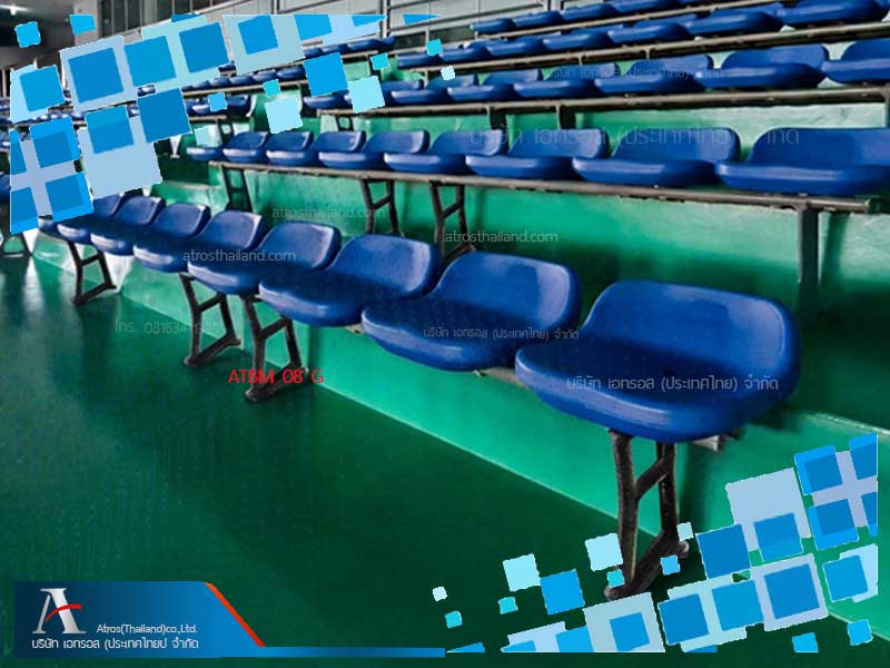 เก้าอี้สนามกีฬามีที่นั่งพนักพิงเตี้ย แบบขายึดพื้น เพิ่มความสบายนั่งผู้นัี่งชมในแถว สามารถหลบขา ให้ผู้ชมท่านอื่นๆที่นั่งร่วมแถวเข้าออกได้สะดวกเพิ่มขึ้น และเก้าอี้รุ่นที่ตั้งบนขาตั้งพื้น รุ่น ATBM 08G หากความสูงขั้นสูงชันทำให้ติดตั้ง เก้าอี้รุ่นแบบยึดที่บนผิวพื้นขั้นโดยตรง แล้วพื้นผิวที่นั่งจะสูงเกิน จะไม่ได้หลักสรีระวิทยา