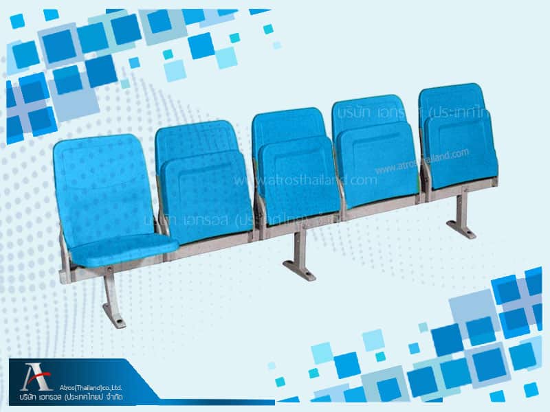 เก้าอี้อัฒจันทร์มีที่นั่งพับกระดกได้ไม่มีท้าวแขน ที่นั่งและพนักพิงทำด้วย พลาสติกชนิดเอชดีพีอี ( HDPE.) ฉีดด้วยเป่า (Blow mold) คานและ ขาเก้าอี้ ทำด้วยเหล็ก พ่นสีกันสนิมด้วยระบบ Powder coat ยึดกับพื้นขั้นลูกนอนของขั้นอัฒจันทร์ สามารถนำไปประยุกต์ เป็นเก้าอี้แถว เก้าอี้พักคอย หรือเปลี่ยนขา เป็นแบบ ไม่ต้องยึดพุกติดกับพื้น